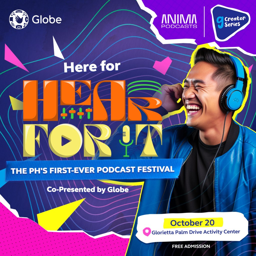 Globe is once again at the forefront of supporting Filipino creativity, joining ANIMA Podcasts in co-presenting the first-ever Philippine Podcast Festival, “Hear For It!” The event will be held at the Glorietta 2 Palm Drive Activity Center in Makati City on October 20, from 10 a.m. to 7 p.m.