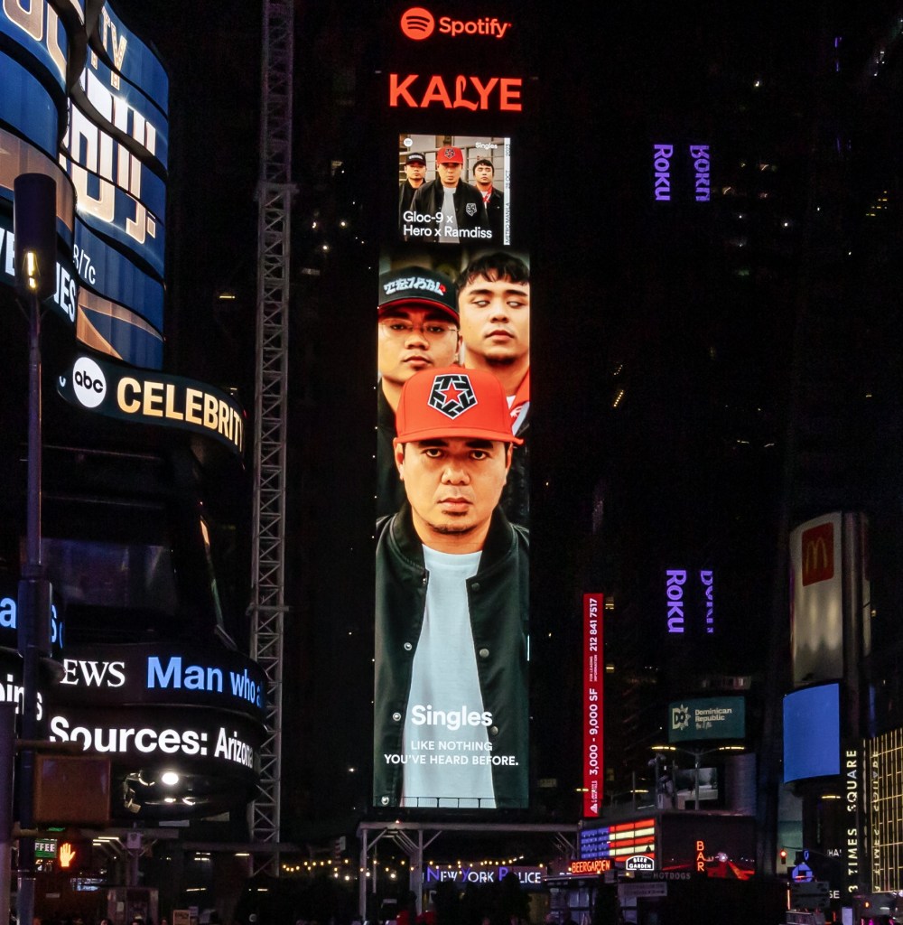 The multi-talented rappers from Universal Records Philippines became the latest Asian artists to grace the extravagant Times Square billboard in New York City, USA. The towering billboard featuring Gloc-9, Hero, and Ramdiss is part of the KALYE X campaign, Spotify’s initiative that spotlights Pinoy hip-hop through meaningful collaborations with artists and communities. Also featured there are fellow hip-hop artists Midnasty, Cookie$, and Morobeats.