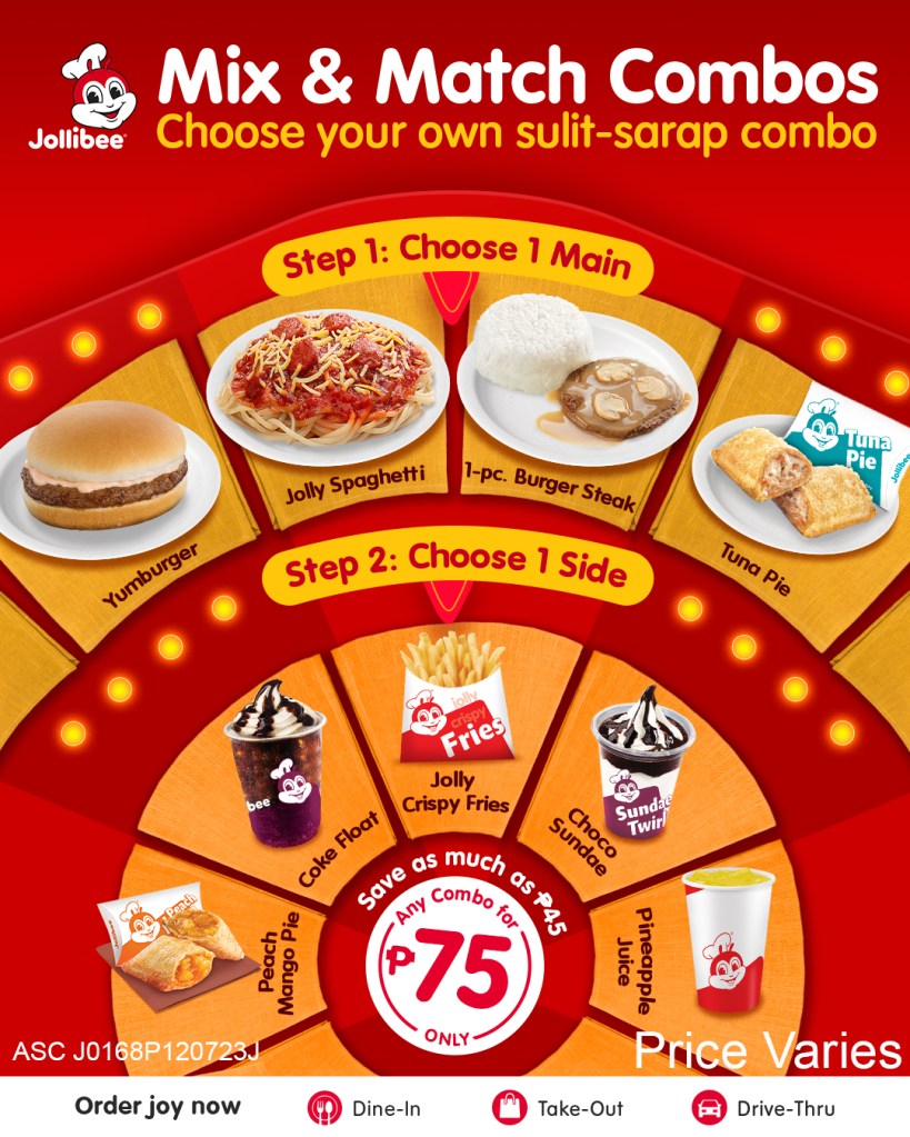 Jollibee’s Mix Match Combos are available nationwide for only P75 so be sure to drop by your nearest branch and create your perfect combination via dine-in, take-out, or drive-thru.