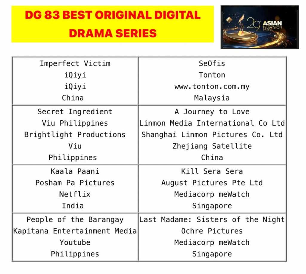 The winners will be announced at the Asian Television Awards ceremony, set to take place this coming November 30, 2024 in Jakarta, Indonesia.