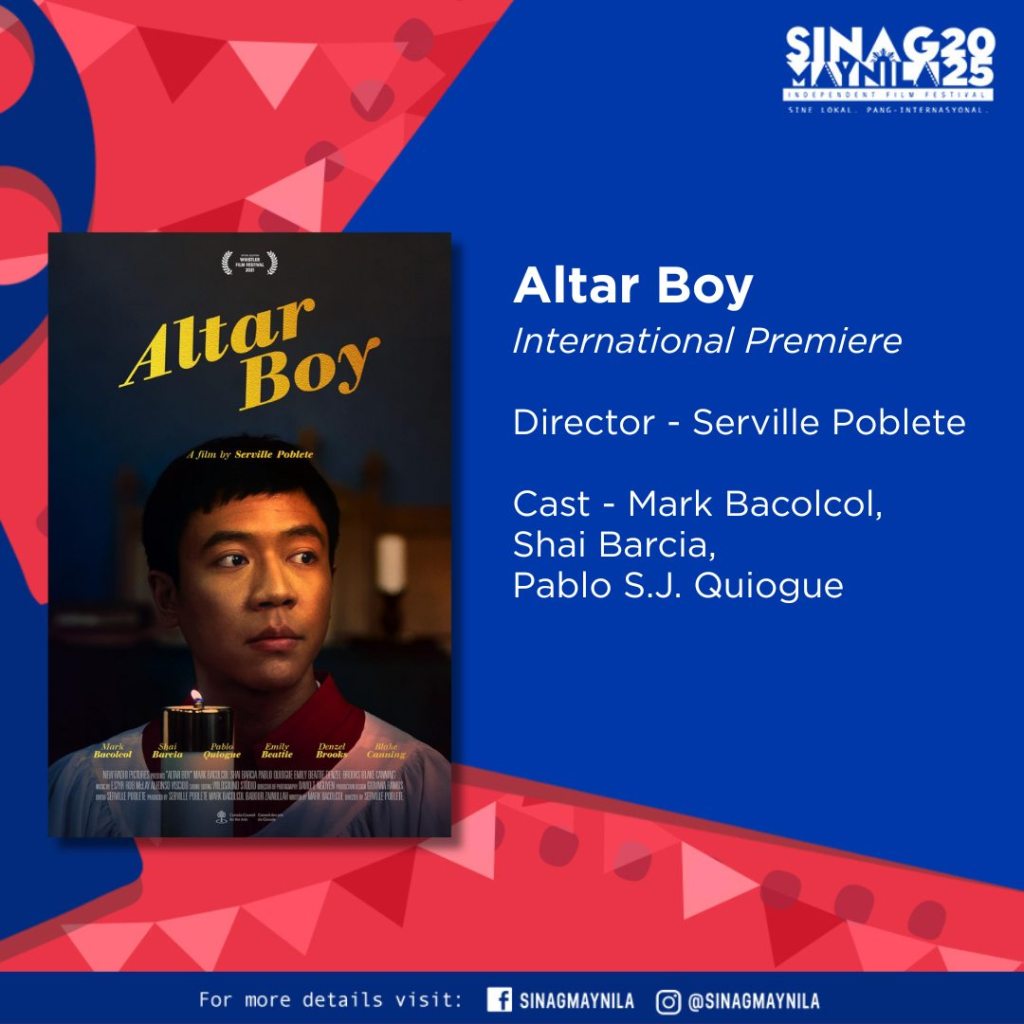 - Altar Boy: This Canadian-Filipino film from director Serville Poblete is a coming-of-age story about a teenager caught between his desire for independence and his deeply religious mother. It’s a relatable story that’s sure to resonate with a lot of us.